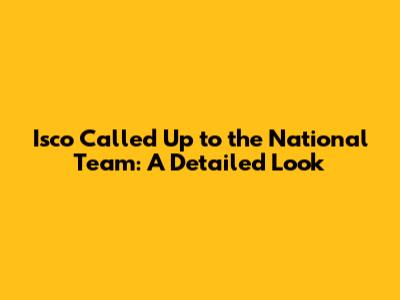 Isco Called Up To The National Team: A Detailed Look