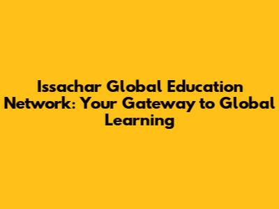 Issachar Global Education Network: Your Gateway To Global Learning