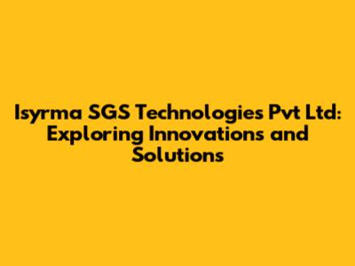 Isyrma SGS Technologies Pvt Ltd stands as a testament to the power of innovation and dedication in the tech world. From its core offerings in software development and IT consulting to its broader impact on industry growth and digital transformation, the company exemplifies a commitment to excellence. As we look to the future, Isyrma SGS Technologies is poised to continue its upward trajectory, driven by emerging technologies and a steadfast focus on client success. For anyone tracking impactful tech companies, Isyrma SGS Technologies is certainly one to watch!