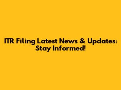 ITR Filing Latest News & Updates