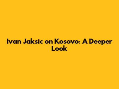 Ivan Jaksic On Kosovo: A Deeper Look