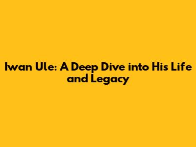 Hey guys! Let's talk about Iwan Ule, a name that might ring a bell for some, and for others, a total mystery! This article is all about diving deep into the life of Iwan Ule – who he was, what he did, and what made him... well, him. We're going to explore his biography, journey through his career, and unearth some cool, untold stories that shed light on the man behind the name. Get ready for a fascinating ride!