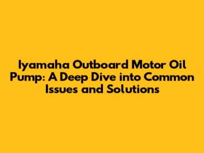 Common Iyamaha Outboard Motor Oil Pump Problems