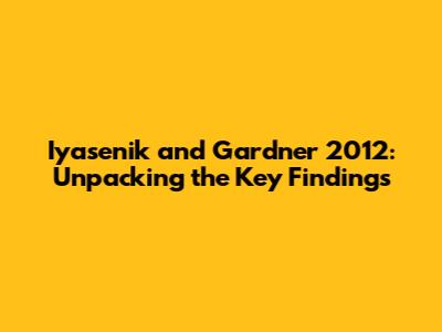 Alright, let's get to the good stuff – what did Iyasenik and Gardner 2012 actually discover? Their research uncovered several crucial insights that have since influenced how we understand [topic].