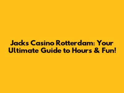 Jack's Casino Rotterdam: Hours & Everything You Need!