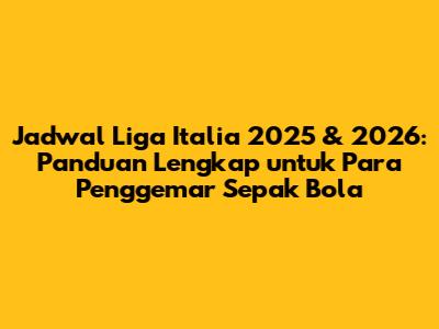 Guys, penggemar sepak bola Italia, bersiaplah! Kita akan membahas tuntas tentang jadwal Liga Italia 2025 dan 2026. Mari kita selami informasi penting yang perlu kamu ketahui agar tidak ketinggalan satu pun pertandingan seru. Artikel ini akan menjadi panduan lengkapmu, mulai dari format kompetisi, tim yang akan bertanding, hingga cara mendapatkan informasi jadwal terbaru. Jadi, siapkan camilan dan minuman favoritmu, karena kita akan segera memulai petualangan seru ini!