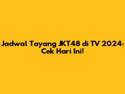 Jadwal Tayang JKT48 Di TV 2024: Cek Hari Ini!