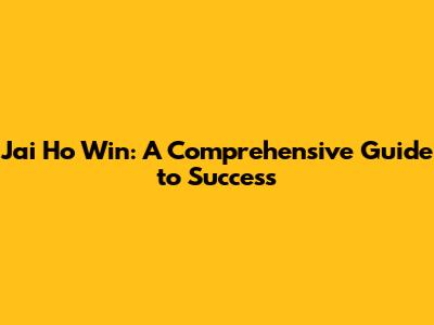 Jai Ho Win: A Comprehensive Guide To Success