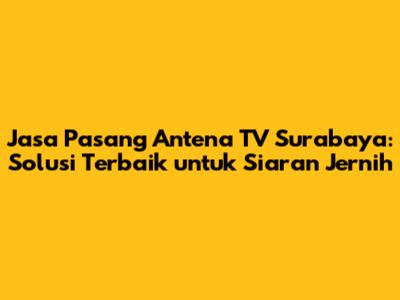 Jasa pasang antena TV Surabaya menawarkan solusi terbaik bagi Anda yang ingin menikmati siaran televisi berkualitas di rumah. Dengan semakin banyaknya pilihan saluran dan teknologi televisi yang berkembang, memiliki antena TV yang tepat dan dipasang dengan benar menjadi sangat penting. Artikel ini akan membahas secara mendalam tentang layanan jasa pasang antena TV Surabaya, mengapa Anda membutuhkannya, apa yang perlu dipertimbangkan, serta keuntungan dan tips memilih penyedia jasa yang tepat.