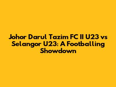 Hey sports fans, get ready for a thrilling match! We're diving deep into the exciting world of Malaysian football to break down the highly anticipated clash between Johor Darul Ta'zim FC II U23 and Selangor U23. This isn't just any game; it's a battle of young talents, a test of tactical prowess, and a showcase of the future stars of Malaysian football. This detailed analysis will cover everything you need to know, from team backgrounds and player spotlights to strategic insights and predictions, ensuring you're fully informed and ready to enjoy the game. Buckle up, because we're about to explore the heart of Malaysian football.