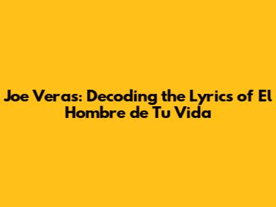 Joe Veras: Lyrics To 'El Hombre De Tu Vida'