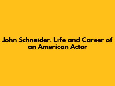 John Schneider: Life And Career Of An American Actor