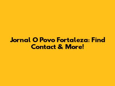 Jornal O Povo Fortaleza: Find Contact & More!