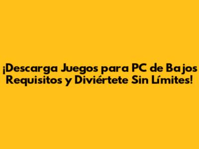 Juegos Para PC De Bajos Requisitos: ¡Descarga Y Juega!