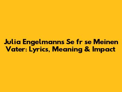 Hey guys, let's dive into the world of spoken word and music with a deep look at Julia Engelmann's powerful piece, "Sefrse Meinen Vater." This track isn't just a song; it's a raw and emotional exploration of grief, love, and the complex relationship between a daughter and her father. We're going to unpack the lyrics, the emotions behind them, and why this song resonated so deeply with so many people. Get ready to feel all the feels!