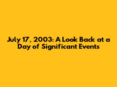 July 17, 2003: A Look Back At A Day Of Significant Events