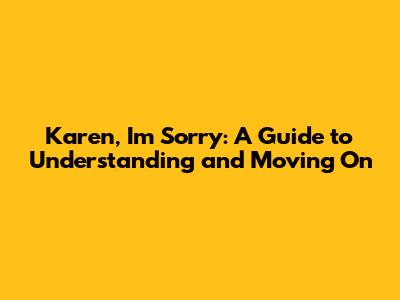 Karen, I'm Sorry: A Guide To Understanding And Moving On