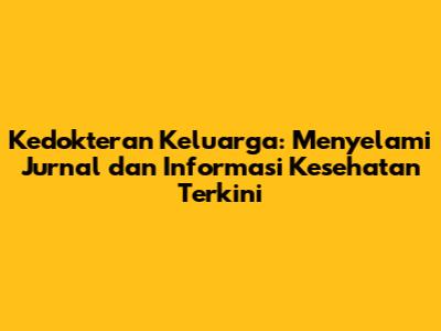 Kedokteran Keluarga: Jurnal & Informasi Kesehatan Terkini