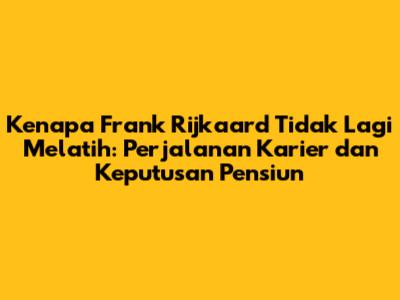 Keputusan Frank Rijkaard untuk tidak lagi melatih mungkin membuat banyak penggemar sepak bola merasa kehilangan. Namun, kita harus menghargai keputusannya dan mengucapkan terima kasih atas segala kontribusi yang telah ia berikan bagi dunia sepak bola. Ia telah memberikan banyak kenangan indah, baik sebagai pemain maupun pelatih. Frank Rijkaard akan selalu dikenang sebagai salah satu tokoh penting dalam sejarah sepak bola. Meskipun ia tidak lagi berada di pinggir lapangan, warisannya akan tetap hidup dalam ingatan para penggemar sepak bola di seluruh dunia.