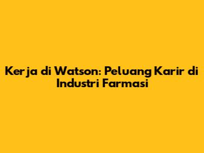 Kerja Di Watson: Peluang Karir Di Industri Farmasi