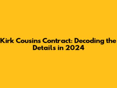Kirk Cousins' Contract: What You Need To Know In 2024