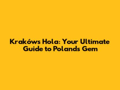 Kraków's Hola: Your Ultimate Guide To Poland's Gem