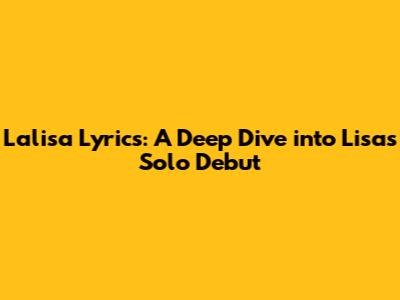 Lalisa Lyrics: A Deep Dive Into Lisa's Solo Debut