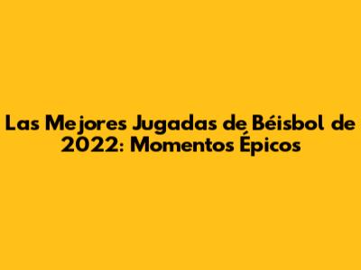 Las Mejores Jugadas De Béisbol De 2022: Momentos Épicos