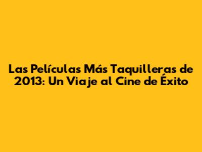 Las Películas Más Taquilleras De 2013: Un Viaje Al Cine De Éxito