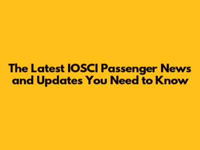 Latest IOSCI Passenger News And Updates