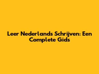 Leer Nederlands Schrijven: Een Complete Gids