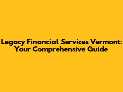 Legacy Financial Services In Vermont: Your Guide