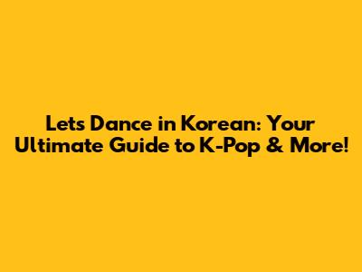 Let's Dance In Korean: Your Ultimate Guide To K-Pop & More!