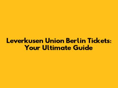 Leverkusen Union Berlin Tickets: Your Guide