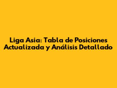 Liga Asia: Tabla De Posiciones Actualizada Y Análisis Detallado