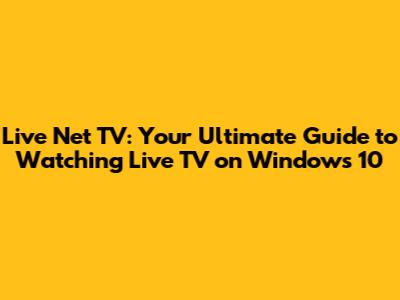 Live Net TV: Watch Live TV On Your Windows 10 PC