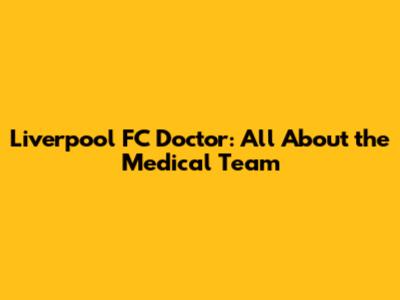 Liverpool FC Doctor: All About The Medical Team