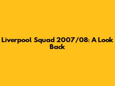 Liverpool Squad 2007/08: A Look Back