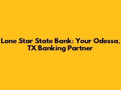 Hey everyone! Let's dive into the world of Lone Star State Bank in Odessa, Texas. If you're looking for a reliable bank in the area, you've probably come across this name. We're going to explore what makes Lone Star State Bank tick, from its services to its overall standing in the community. So, whether you're a long-time resident or new to Odessa, stick around, because we're about to uncover everything you need to know about Lone Star State Bank.