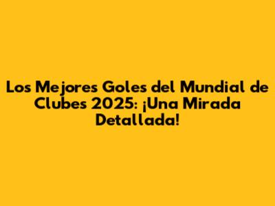 Los Mejores Goles Del Mundial De Clubes 2025: ¡Prepárense Para La Emoción!