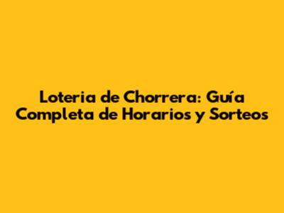 Loteria De Chorrera: Horarios, Sorteos Y Todo Lo Que Necesitas Saber