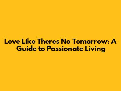 Love Like There's No Tomorrow: A Guide To Passionate Living