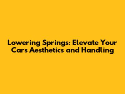 Lowering Springs: Enhance Your Ride's Style & Performance