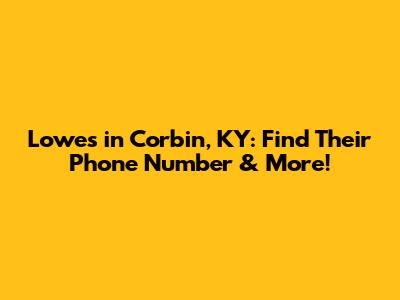 Lowe's In Corbin, KY: Find Their Phone Number & More!