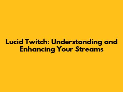 Lucid Twitch: Understanding And Enhancing Your Streams