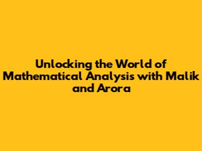 Unlocking the World of Mathematical Analysis with Malik and Arora
