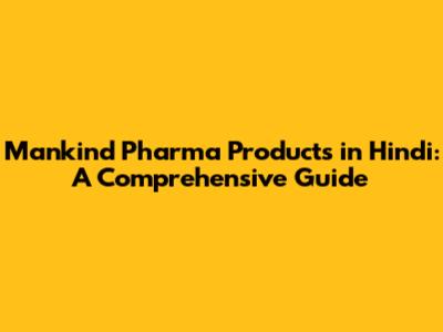 Mankind Pharma: Products, Uses, And Hindi Information