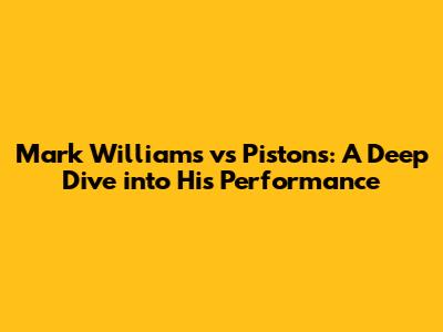 Mark Williams Vs Pistons: A Deep Dive Into His Performance