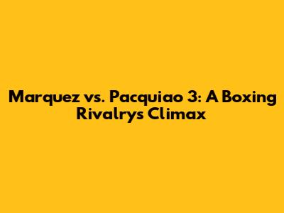 Marquez Vs. Pacquiao 3: A Boxing Rivalry's Climax