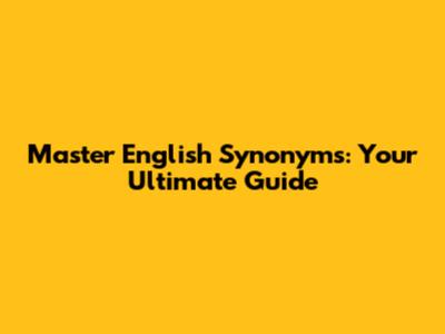 Master English Synonyms: Your Ultimate Guide